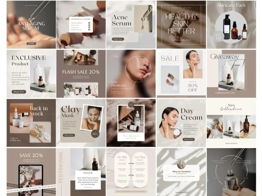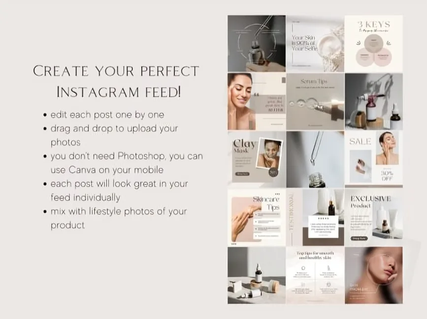 These templates will help you maintain a stylish, modern Instagram presence, allowing you to focus on growing your brand while effortlessly creating content that resonates with your audience. Start using these templates today to elevate your skincare brand’s Instagram feed!